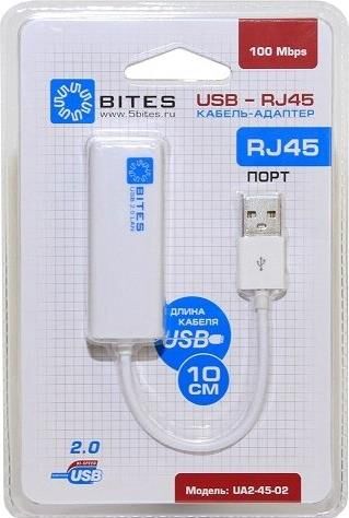 5BITES UA2-45-02WH USB2.0 -> RJ45 10/100 Мбит/с, 10см