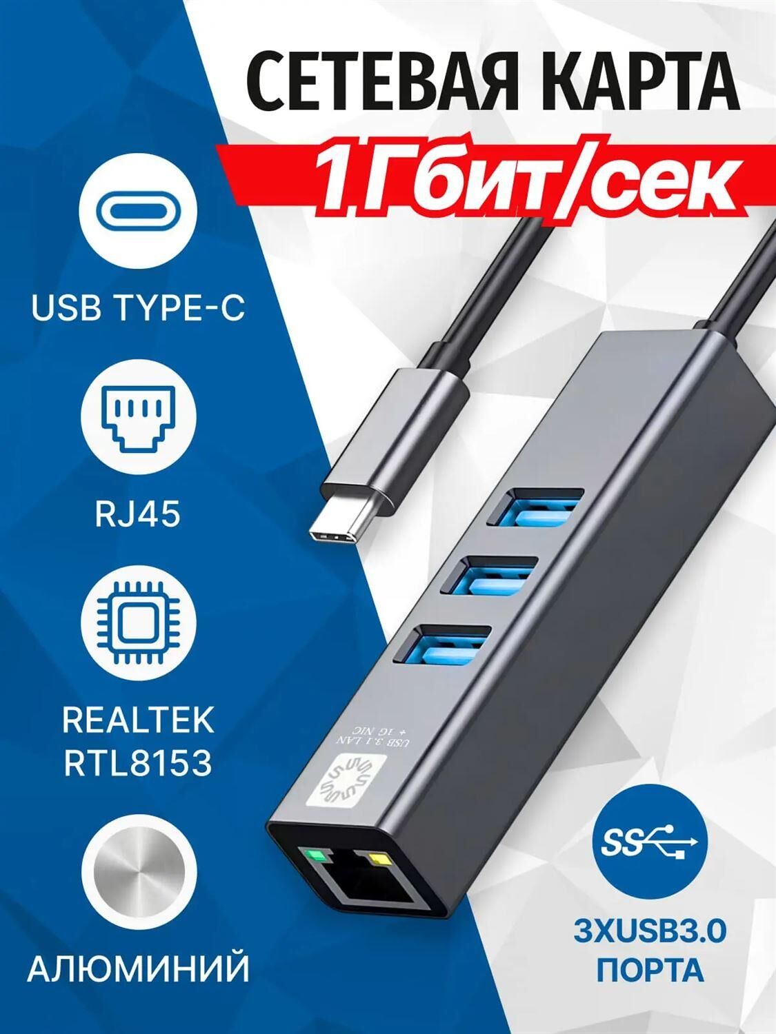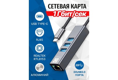 Сетевая карта 5bites UA3C-45-12BK - компактное устройство, которое выполняет роль переходника и подключает ваш Ethernet-кабель витую пару (патч-корд) к портативному компьютеру через USB порт. А так же добавляет три порта USB 3.0 в вашу систему. Разъемы: TYPE-C -> RJ45 гнездо + 3*USB3.0 порта Интерфейс: USB3.1 Type-C Длина кабеля (см): 15 Стандарт связи: IEEE 802.3 10 / 100 / 1000 base-t Скорость передачи данных: 10 / 100 / 1000 Мбит/с (full duplex) Чипсет: GL3510 + Realtek RTL8153 Питание: от USB порта Предназначение: добавляет в систему порт RJ45 и 3*USB3.0 порта Цвет: серый Корпус: алюминий