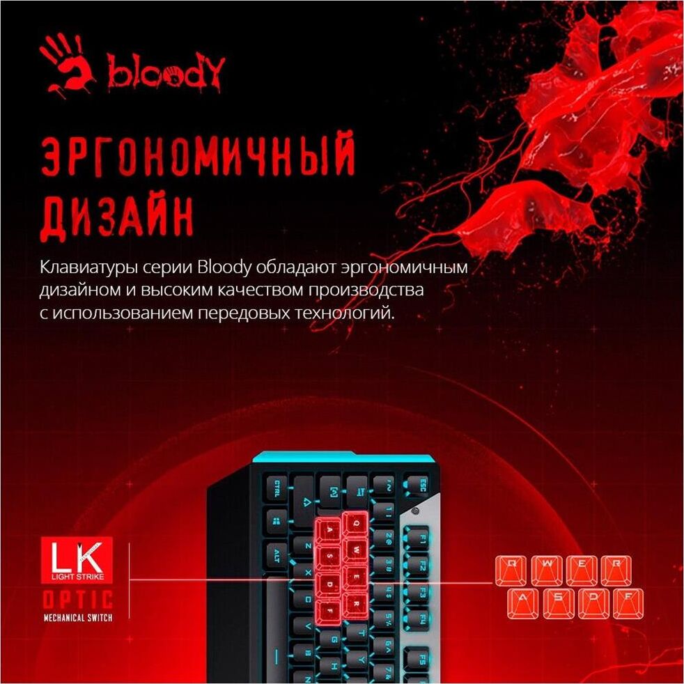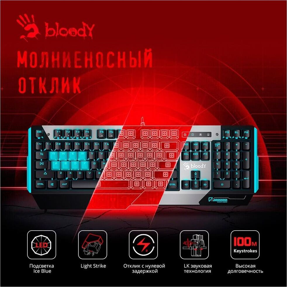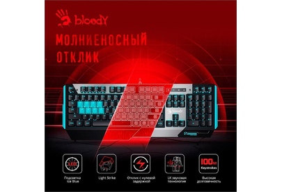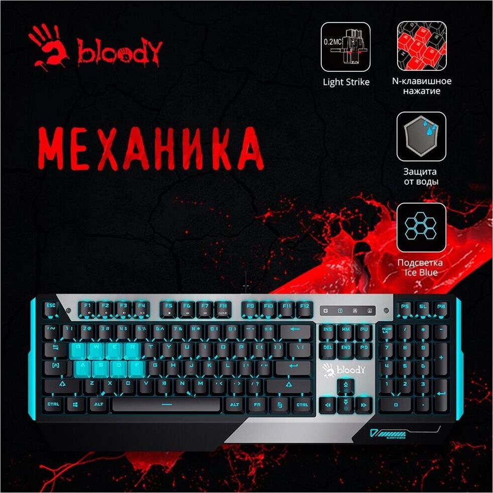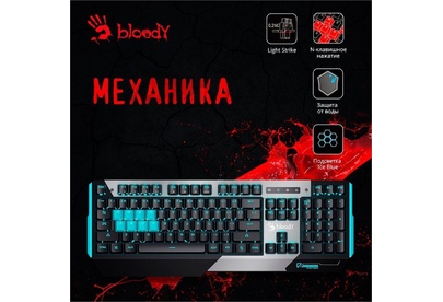 A4TECH Клавиатура B865 механическая серый/черный USB for gamer LED (B865 ICE BLUE) кабель 1.8м