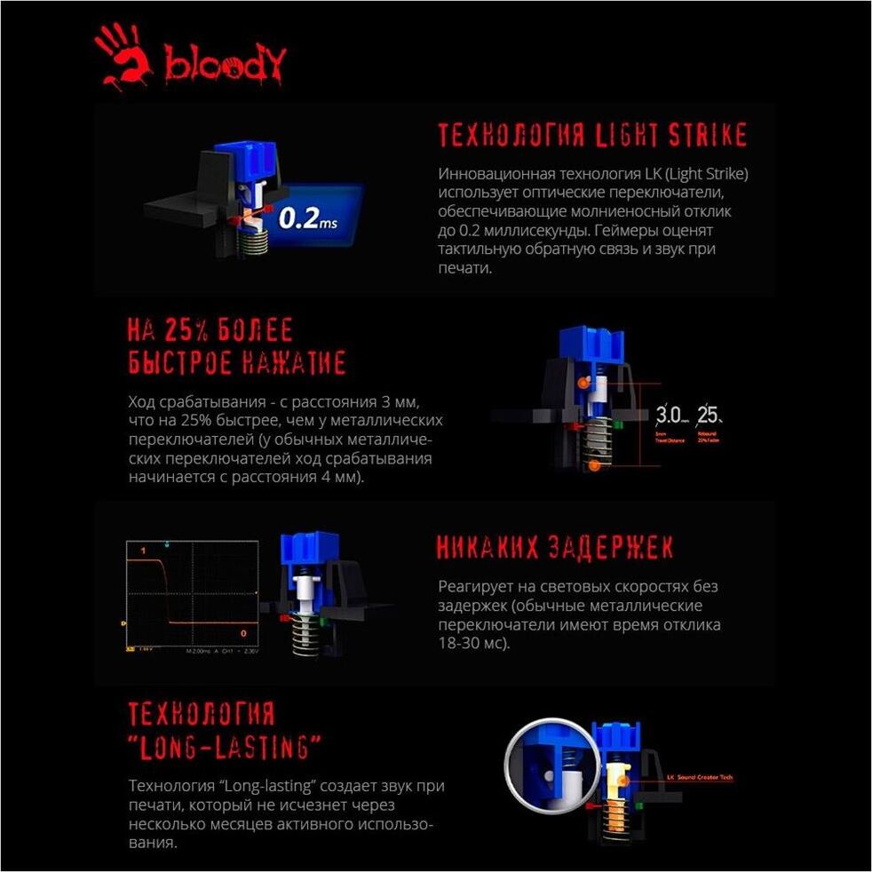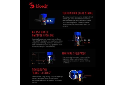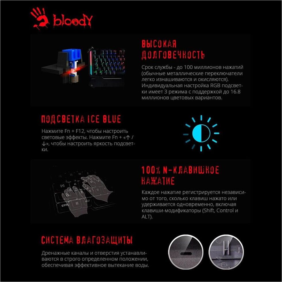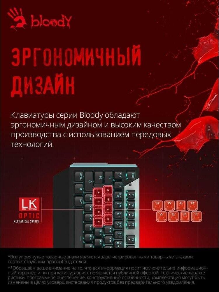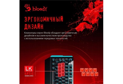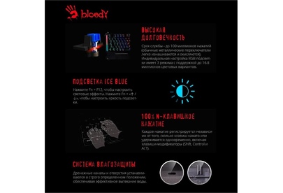A4TECH Клавиатура B865 механическая серый/черный USB for gamer LED (B865 ICE BLUE) кабель 1.8м
