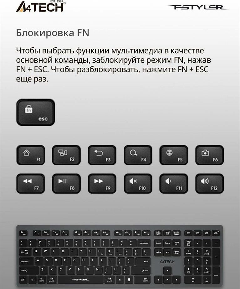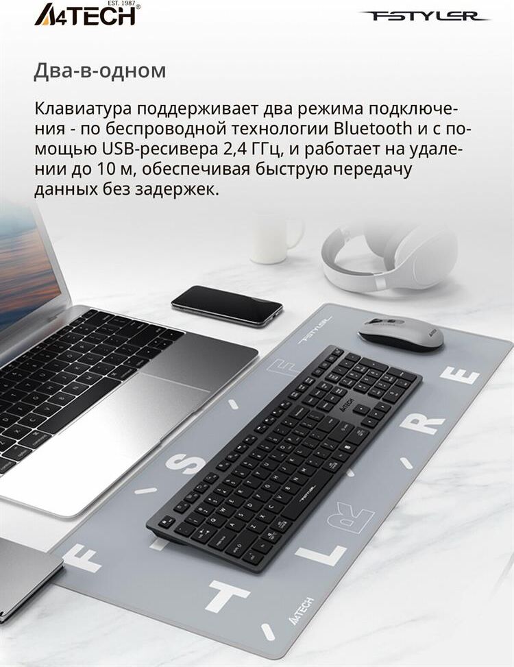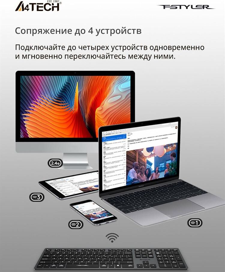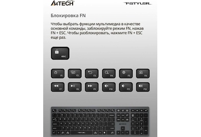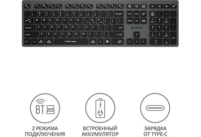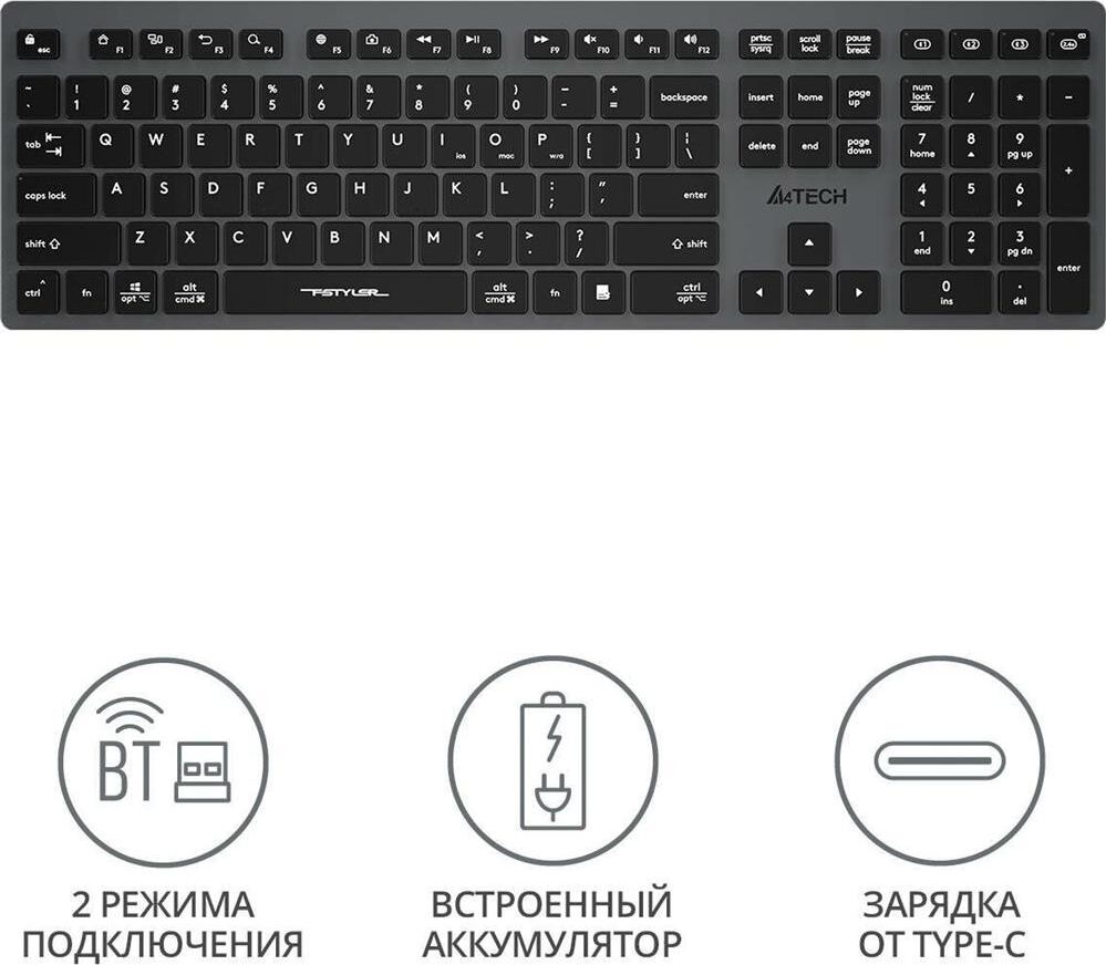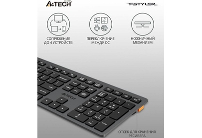 A4TECH Клавиатура беспроводная Fstyler FBX50C grey (USB, BT/Radio, 109 клавиш, slim, multimedia) (FB