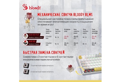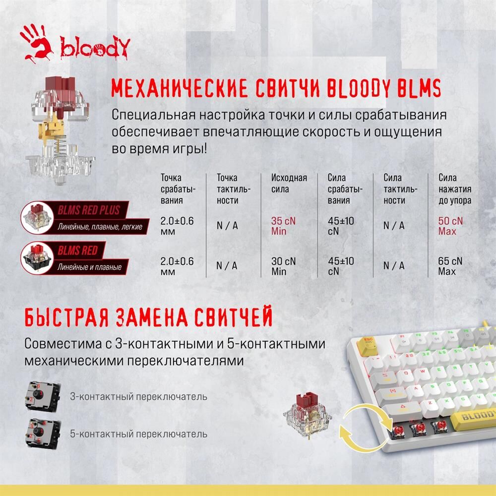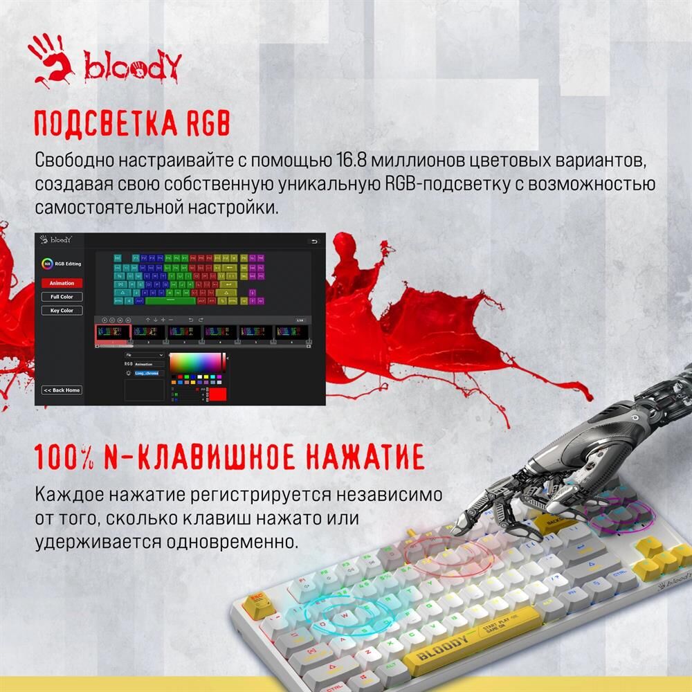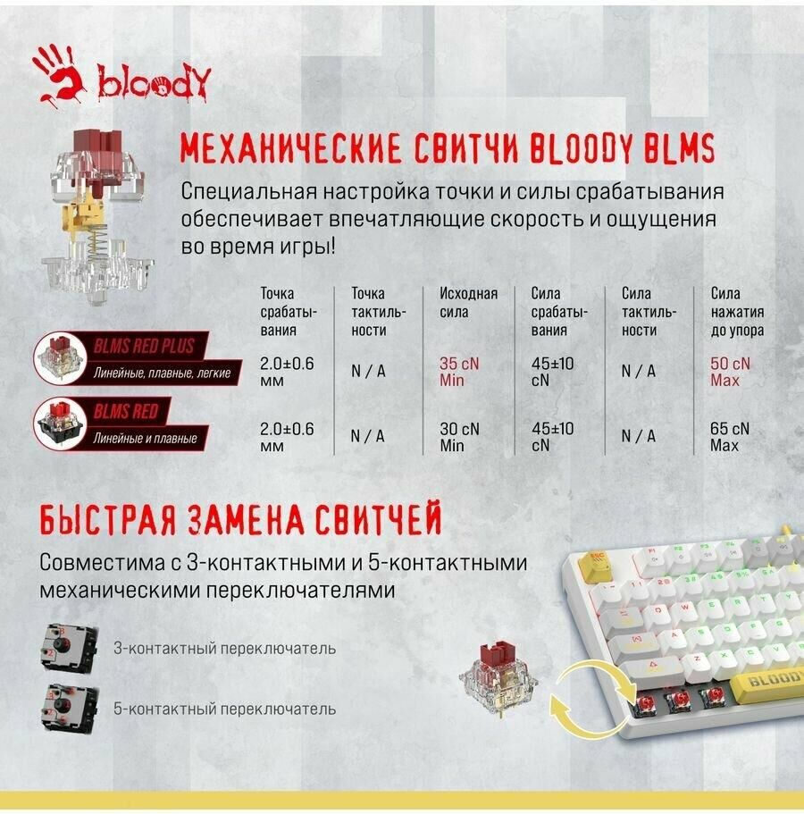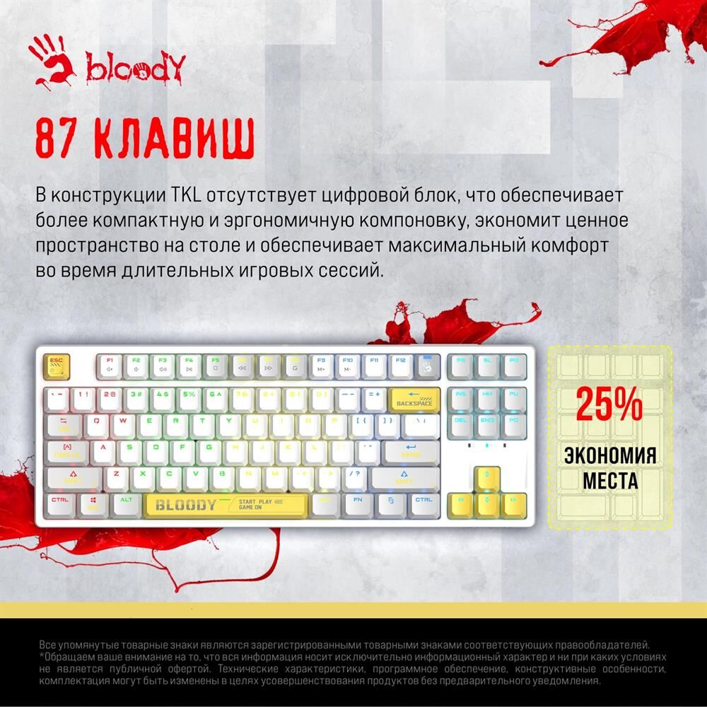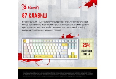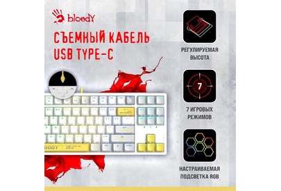 A4TECH Клавиатура Bloody S87 Energy механическая белый USB for gamer LED (S87 USB ENERGY WHITE) кабе