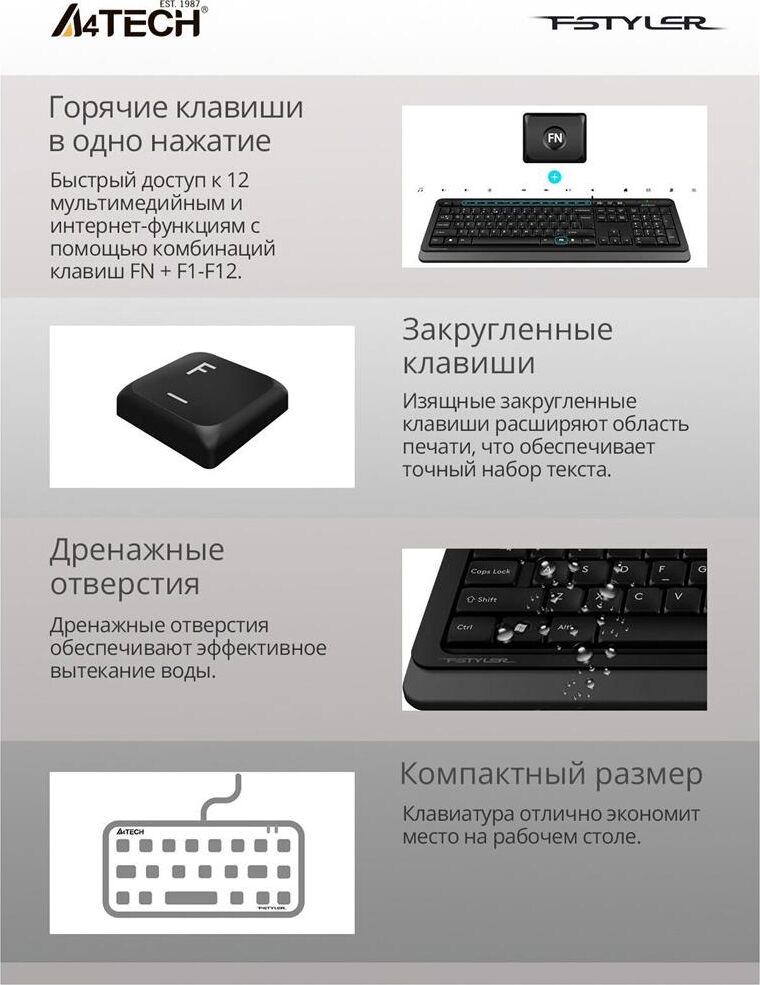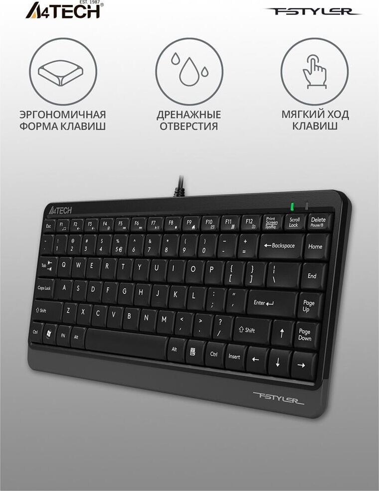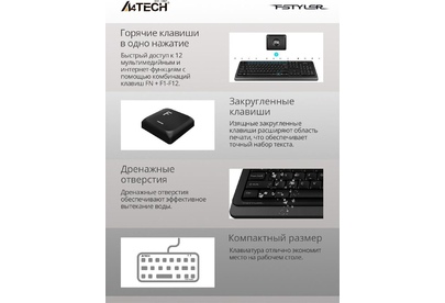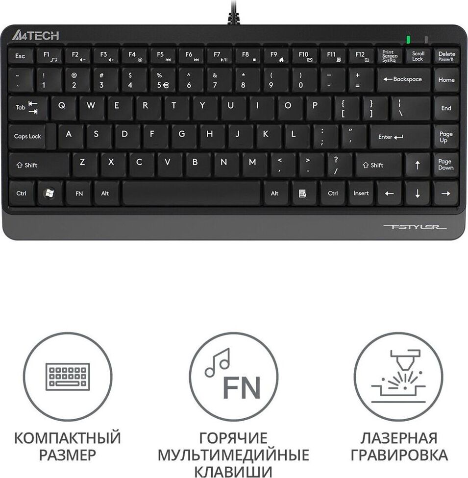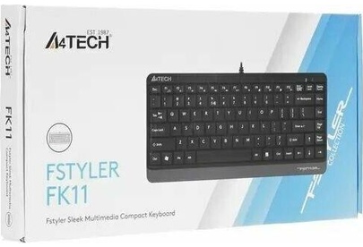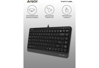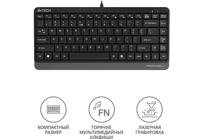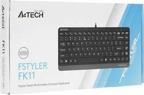A4TECH Клавиатура FK11 черный USB slim (FK11 USB (GREY)) кабель 1.5м