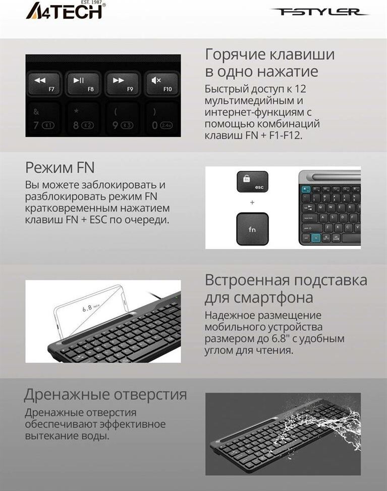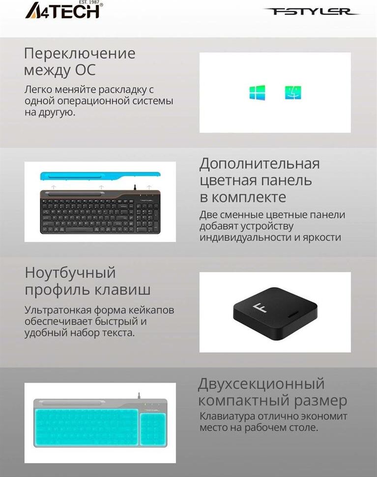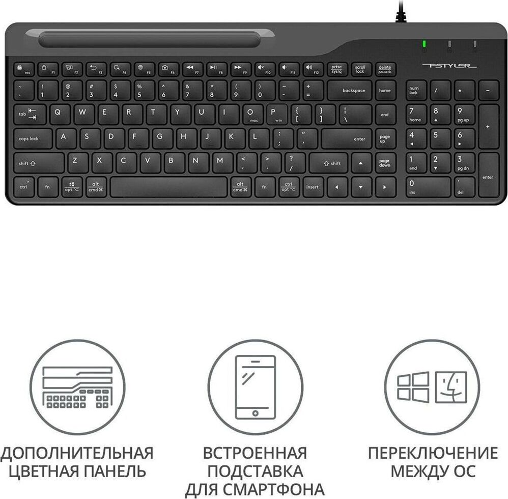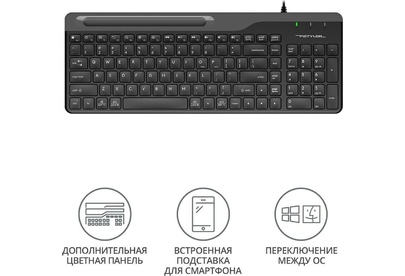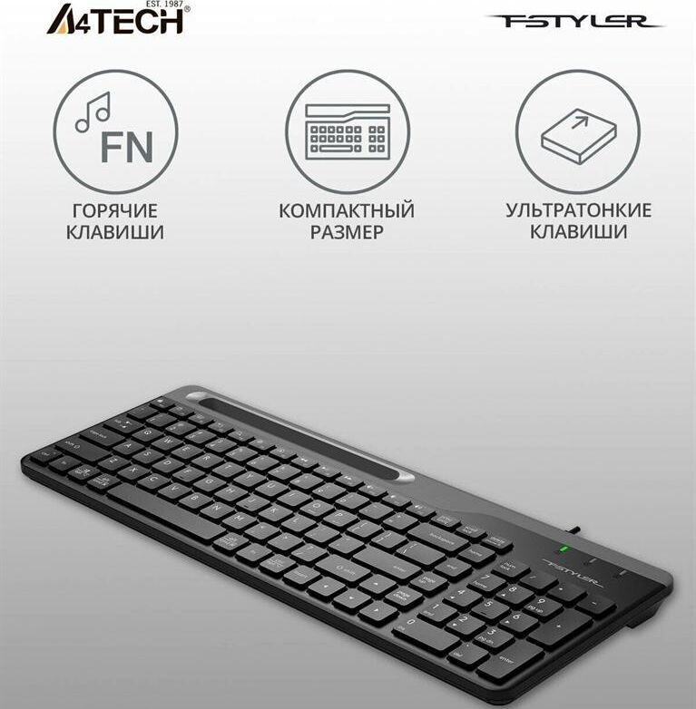 A4TECH Клавиатура FK25 черный/серый USB slim (FK25 BLACK) кабель 1.5м
