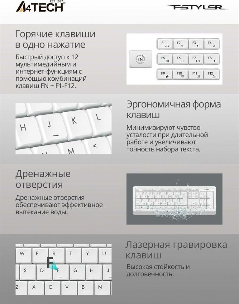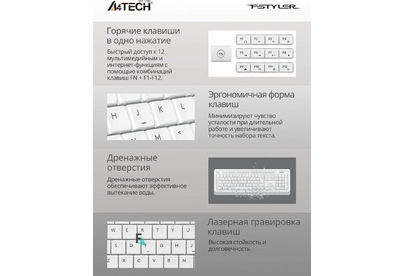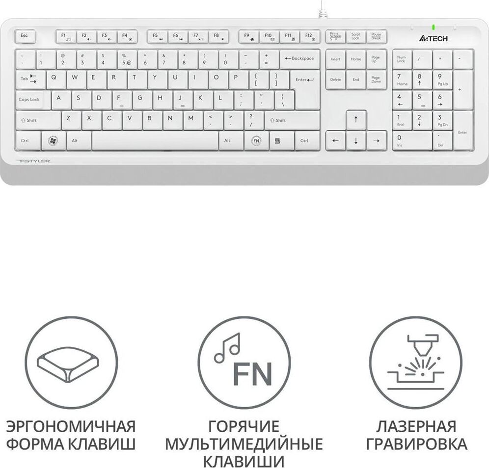 A4TECH Клавиатура Fstyler FK10 белый/серый USB (FK10 WHITE)