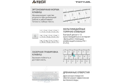 A4TECH Клавиатура + мышь Fstyler FG1012 клав:белый мышь:белый USB беспроводная Multimedia (FG1012 WH