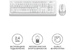 Интерфейс подключения: USB. Тип соединения клавиатуры: беспроводной. Питание клавиатуры от: 1xAA. Тип мыши: оптическая. Разрешение сенсора максимальное: 2000. Изменение сенсора кнопкой: есть. Количество кнопок мыши: 4. Питание мыши: 1xAA. Радиус действия: 15. Мультимедийные дополнительные клавиши: есть. Дизайн клавиш: квадратные. Цвет английских букв: серый. Цвет русских букв: серый. Защита от попадания жидкостей: есть. Поддержка разрешений: 1200/1600/2000 dpi. Частота опроса USB порта: 125. Дизайн мыши: для правой и левой руки. Цвет клавиш клавиатуры: белый. Тип беспроводного соединения: Радио. Габариты упаковки (ед) ДхШхВ: 0.56x0.17x0.041. Вес упаковки (ед): 0.88. Гарантия: 12 мес.. Цвет корпуса клавиатуры: белый и серый. Цвет мыши: белый и серый. Размеры клавиатуры: 456 х 156 х 24 мм. Размеры мыши: 108 х 64 х 35 мм. Органы управления: колесо прокрутки, цифровой блок. Питание клавиатуры: 1xAA. Питание мыши: 1xAA. Цвет букв: русских - серый, английских - серый. Мышь: оптическая, 2000 dpi, количество кнопок 4