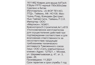 A4TECH Коврик для мыши FStyler FP70 (XL) черный, ткань, 750х300х2мм [fp70 black]