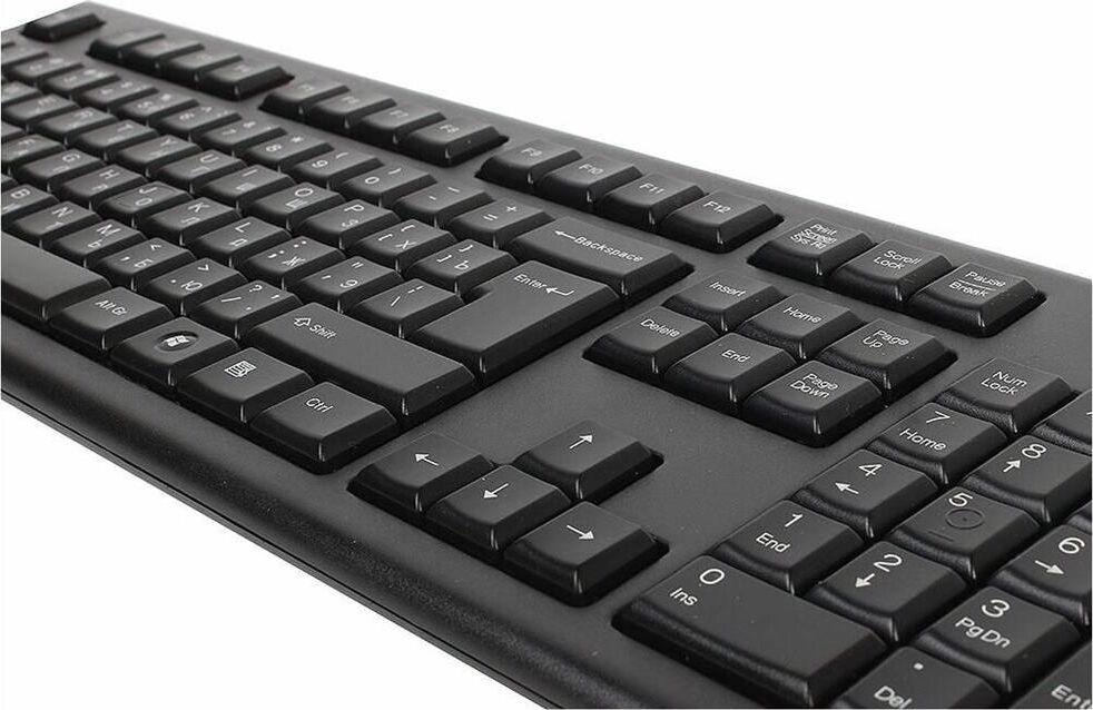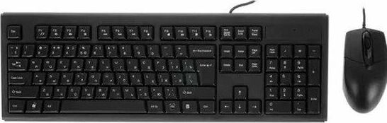 Наор (клавиатура+мышь), тип соединения: проводной, интерфейс подключения: USB, классическая форма, количество кнопок мыши 3. Комфортные закругленные клавиши. Минимизируют чувство усталости при длительной работе. Лазерная гравировка клавиш. Символы не сотрутся в течение всего срока использования. Угол наклона клавиатуры можно отрегулировать с помощью выдвижных ножек.