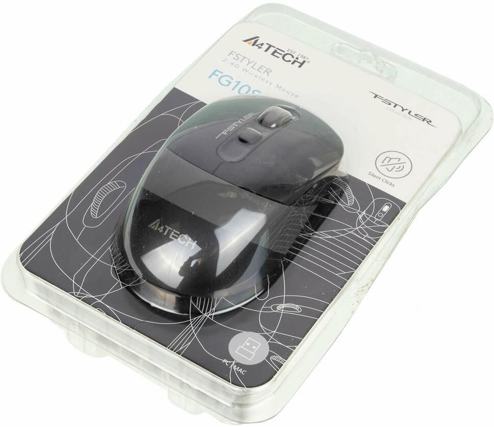 A4TECH Мышь беспроводная Fstyler FG10S, радио, оптическая, USB, 2000dpi, черный и серый [fg10s grey]