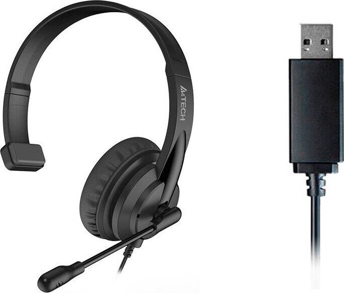 A4TECH Наушники с микрофоном HU-11 черный 2м накладные USB оголовье (HU-11/USB/BLACK)