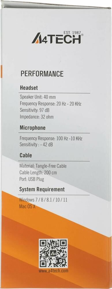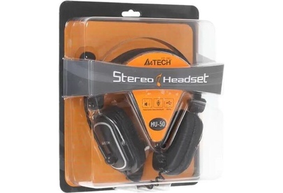 A4TECH Наушники с микрофоном HU-50 черный 2м накладные USB оголовье