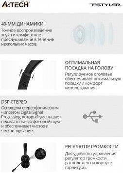A4TECH Наушники с микрофоном HU-8 черный 2м накладные USB оголовье