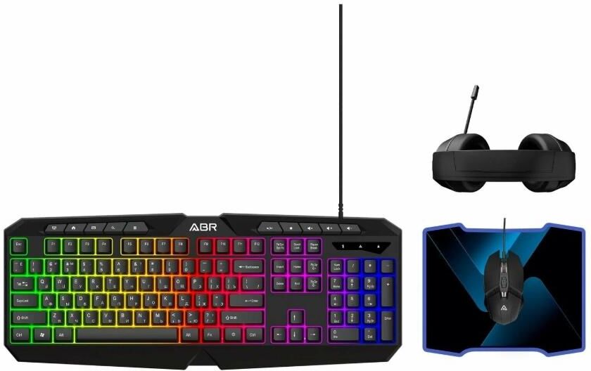 Игровой набор из проводной клавиатуры, мыши, коврика для мыши и наушников ABR KM707+M01D10
