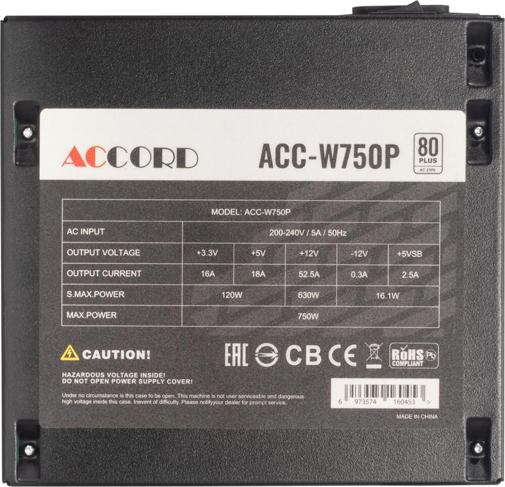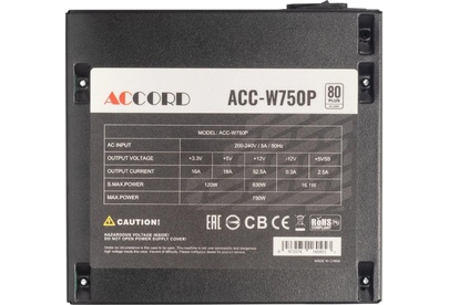 ACCORD Блок питания ATX 750W ACC-W750P 80 PLUS WHITE (20+4pin) 120mm fan 6xSATA RTL