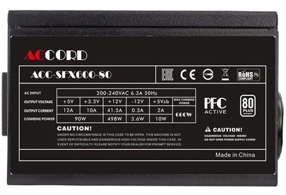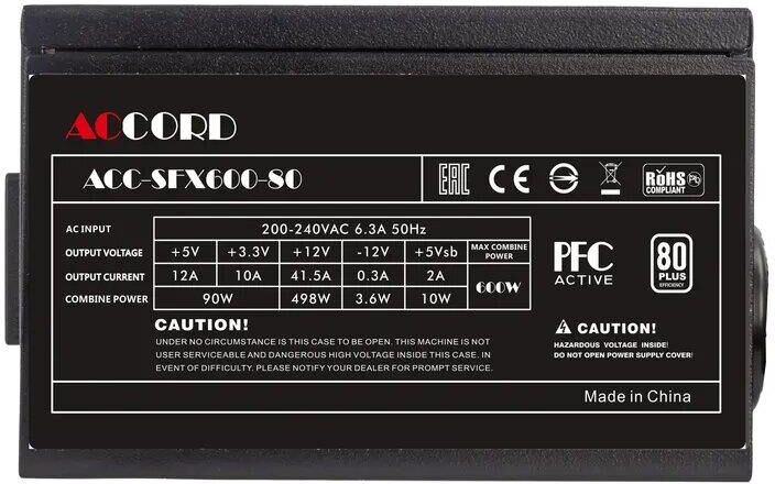 ACCORD Блок питания SFX 600W ACC-SFX600-80 (20+4pin) APFC 80mm fan 3xSATA RTL