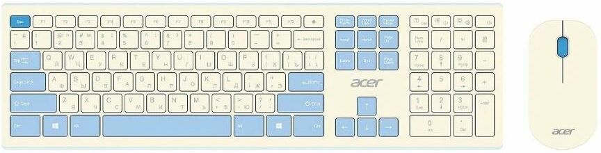 ACER Клавиатура + мышь OCC205 клав:белый мышь:белый/голубой USB беспроводная slim