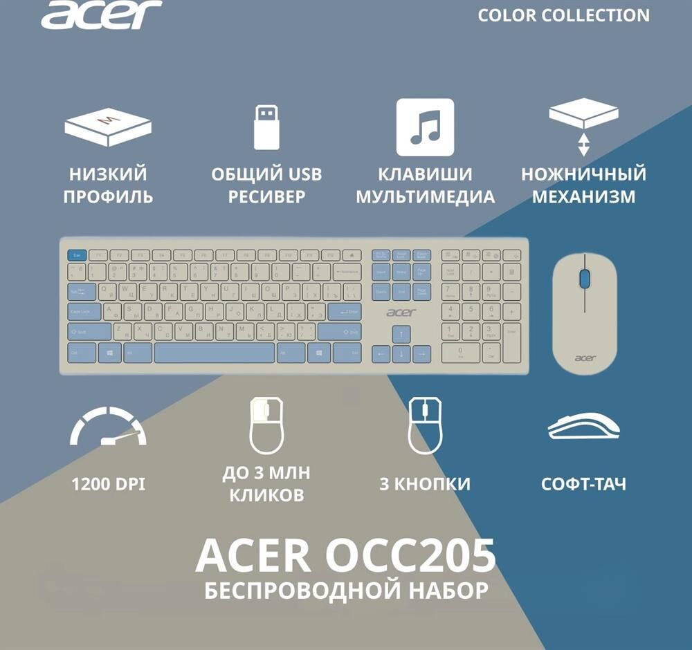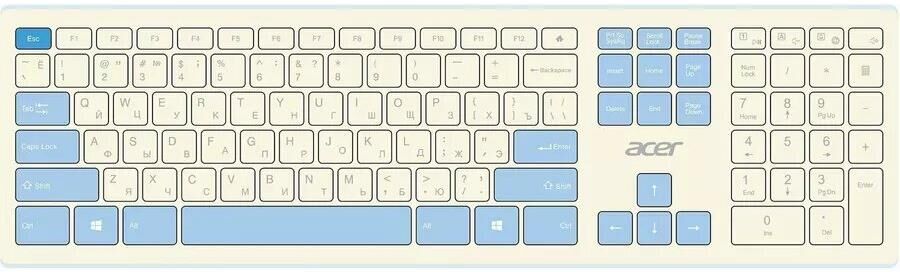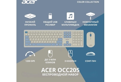 ACER Клавиатура + мышь OCC205 клав:белый/голубой мышь:белый/голубой USB беспроводная slim Multimedia