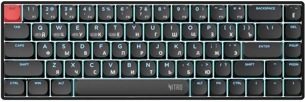 Интерфейс: USB. Тип беспроводного соединения клавиатуры: Bluetooth/Радиоканал. Мультимедийные дополнительные клавиши: есть. Для геймеров: да. Обычная/тонкая: обычная. Подсветка клавиш: есть. Клавиатура с русскими буквами: да. Тип: Клавиатура. Количество разъемов USB: 1xUSB Type-C. Дизайн клавиш: квадратные. Длина кабеля: 1.5. Радиус действия клавиатуры: 10. Количество элементов питания: 1. Тип элементов питания: собственный Li-Pol аккумулятор. Цвет английских букв: белый. Цвет русских букв: белый. Цвет клавиш: черный. Цвет корпуса клавиатуры: черный. Материал корпуса: пластик/металл. Вес: 0.46. Механическая: да. Тип соединения: беспроводная. Количество клавиш: 68. Тип подсветки: многоцветная. Тип механических переключателей: OUTEMU short linear & smooth. Габариты упаковки (ед) ДхШхВ: 0.46x0.173x0.035. Вес упаковки (ед): 0.51. Страна производитель: Китай. Комплектация: клавиатура, руководство пользователя, USB-приемник. Время отклика: 15. Размер раскладки: 65%. Расположение символов: лицевая сторона. Формат ра