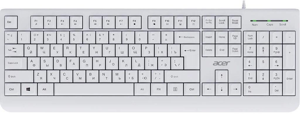 ACER Клавиатура OKW400 белый USB Multimedia (ZL.KBDEE.01B) кабель 1.8м