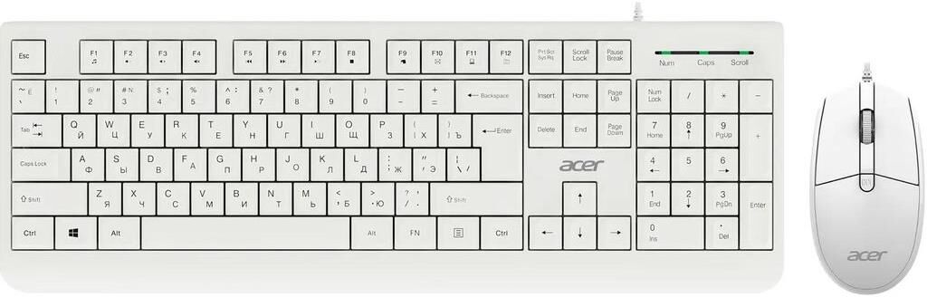ACER Комплект (клавиатура+мышь) OCC400, USB, проводной, белый [zl.acccc.014]