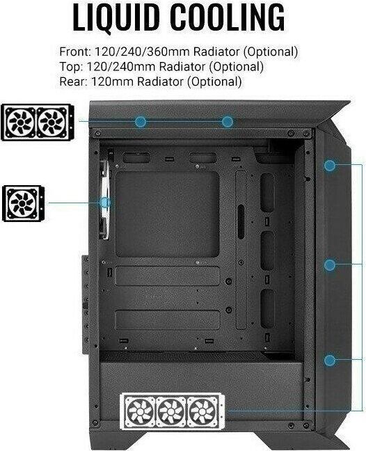 AEROCOOL Корпус Gladiator Duo-G-BK-v1 черный без БП ATX 5x120mm 2x140mm 2xUSB3.0 audio bott PSU