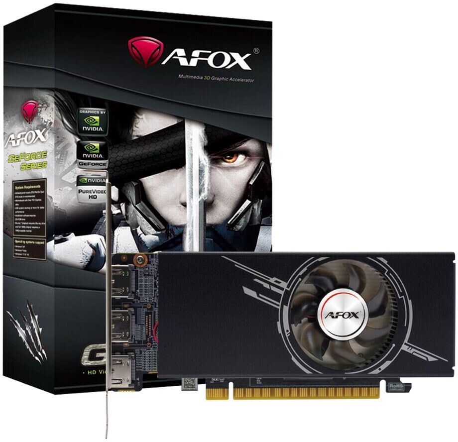 **Видеокарта Afox GTX 1050 Ti 4 GB — оптимальное решение для вашего ПК!** Ищете надёжную и производительную видеокарту начального уровня? Afox GTX 1050 Ti — идеальный выбор! **Почему стоит выбрать Afox GTX 1050 Ti?** * **Высокая производительность:** графический процессор NVIDIA GeForce GTX 1050 Ti с 4 ГБ видеопамяти GDDR5 обеспечит плавную работу приложений и игр. * **Многозадачность:** можно подключить до трёх мониторов — удобно для работы и игр. * **Компактность:** низкий профиль позволит установить видеокарту даже в небольшой корпус. * **Эффективное охлаждение:** один вентилятор обеспечит надёжное охлаждение, сохраняя тишину и производительность. * **Простота подключения:** не требует дополнительного питания, занимает всего один слот на материнской плате. **Основные характеристики:** * модель графического процессора: GTX 1050 Ti; * объём видеопамяти: 4 ГБ; * тип видеопамяти: GDDR5; * разрядность шины видеопамяти: 128 бит; * максимальное разрешение: 4096 x 2160; * количество HDMI-разъёмов: 3; * тип охлажде
