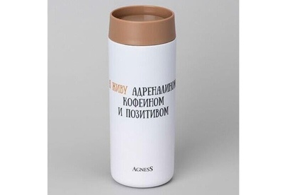 Термокружка AGNESS - незаменимый помощник в повседневной жизни. Будь это дальняя поездка, обычная прогулка или просто рабочий день в офисе - любимый напиток всегда с собой. Двойные стенки из нержавеющей стали, благодаря технологии вакуумной термоизоляции, сохраняют напитки холодными или горячими в течение долгого времени. Дополнительная медная прослойкой между 2-мя стенками, увеличивает термоизоляцию на 10%. Герметичная крышка. Термокружку AGNESS удобно брать с собой, она легко поместиться в сумку или рюкзак. Не мыть в посудомоечной машине. Рекомендована ручная мойка. Термокружка считается годной, если после 6 часов хранения остаточная температура воды в ней будет около 60 С° (+/- 5 С°). Начальная температура воды должна быть 98-100 С°. Испытания должны проводится при комнатной температуре 21 С°