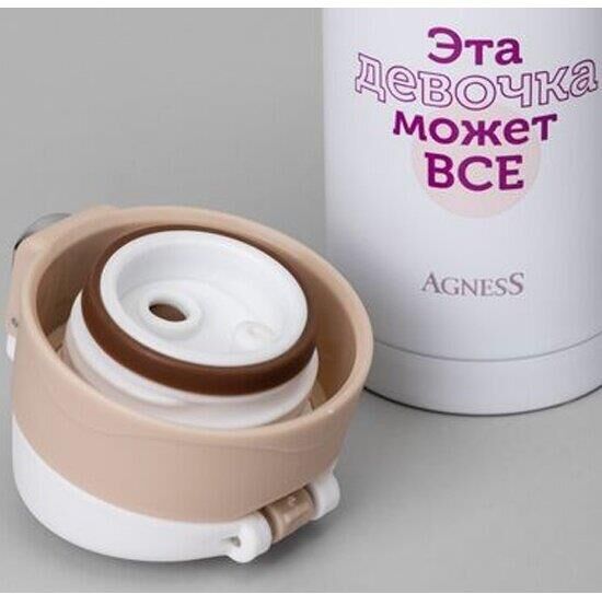 Термокружка AGNESS - незаменимый помощник в повседневной жизни. Будь это дальняя поездка, обычная прогулка или просто рабочий день в офисе - любимый напиток всегда с собой. Двойные стенки из нержавеющей стали, благодаря технологии вакуумной термоизоляции, сохраняют напитки холодными или горячими в течение долгого времени. Дополнительная медная прослойкой между 2-мя стенками, увеличивает термоизоляцию на 10%. Герметичная крышка. Термокружку AGNESS удобно брать с собой, она легко поместиться в сумку или рюкзак. Не мыть в посудомоечной машине. Рекомендована ручная мойка. Термокружка считается годной, если после 6 часов хранения остаточная температура воды в ней будет около 60 С° (+/- 5 С°). Начальная температура воды должна быть 98-100 С°. Испытания должны проводится при комнатной температуре 21 С°