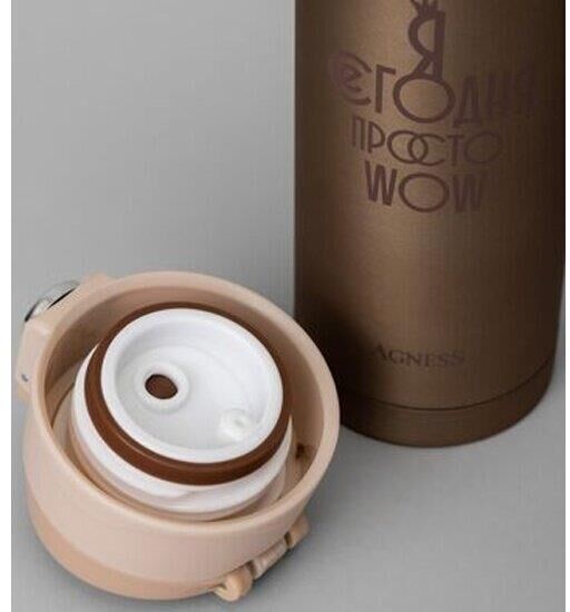 Термокружка AGNESS - незаменимый помощник в повседневной жизни. Будь это дальняя поездка, обычная прогулка или просто рабочий день в офисе - любимый напиток всегда с собой. Двойные стенки из нержавеющей стали, благодаря технологии вакуумной термоизоляции, сохраняют напитки холодными или горячими в течение долгого времени. Дополнительная медная прослойкой между 2-мя стенками, увеличивает термоизоляцию на 10%. Герметичная крышка. Термокружку AGNESS удобно брать с собой, она легко поместиться в сумку или рюкзак. Не мыть в посудомоечной машине. Рекомендована ручная мойка. Термокружка считается годной, если после 6 часов хранения остаточная температура воды в ней будет около 60 С° (+/- 5 С°). Начальная температура воды должна быть 98-100 С°. Испытания должны проводится при комнатной температуре 21 С°