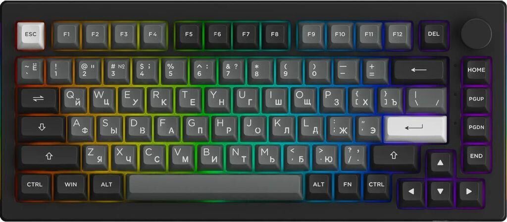 Тип беспроводного соединения клавиатуры: Bluetooth. Мультимедийные дополнительные клавиши: есть. Для геймеров: да. Обычная/тонкая: обычная. Подсветка клавиш: есть. Клавиатура с русскими буквами: НЕТ. Особенности: Возможность подключить клавиатуру по USB Type-C. Дизайн клавиш: квадратные. Максимальное время работы: нет. Цвет английских букв: белый. Цвет русских букв: белый. Материал корпуса: пластик. Вес: 1.5. Подходит для ТВ: да. Механическая: да. Тип соединения: беспроводная. Количество клавиш: 82. Тип подсветки: RGB. Тип механических переключателей: Cherry. Габариты упаковки (ед) ДхШхВ: 0.38x0.217x0.055. Вес упаковки (ед): 1.46. Гарантия: 12 мес.. Размеры клавиатуры (ШхВхТ): 335 х 42 х 146 мм. Цвет: черный/серый,черный. Конструктив: механическая. Особенности: подходит для ТВ, мультимедийная, для геймеров. Цвет английских букв: белый. Беспроводной интерфейс: Bluetooth. Цвет русских букв: белый. Тип соединения: беспроводная. Встроено: подсветка клавиш