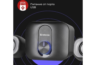 Компактная акустическая система 2.1 Светодиодная подсветка регулятора громкости Регулятор громкости звука со встроенным выключателем Питание от порта USB