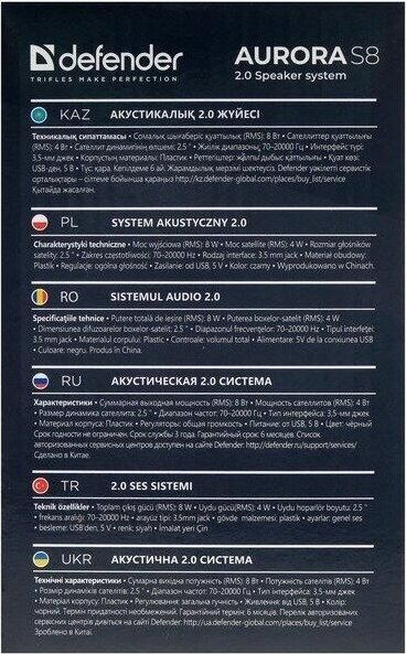Акустическая система, мощность (RMS) - 8 Вт, мощность сателлитов (RMS) - 4 Вт, , диапазон частот 70–20000 Гц, тип интерфейса 3,5-мм джек, материал корпуса - пастик, питание от USB, 5 В.