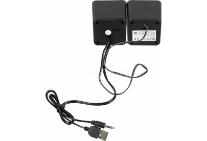 5 Вт, диапазон частот 200-18000 Гц, USB, не требуют сетевого источника питания, тип интерфейса 3,5 мм джек, цвет: черный