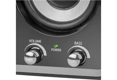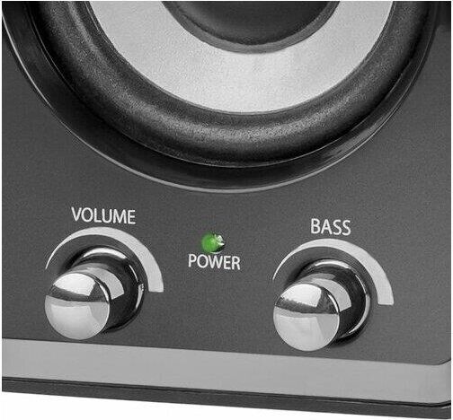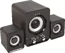 Суммарная выходная мощность (RMS) -16 Вт, мощность сабвуфера (RMS) -10 Вт, мощность сателлитов (RMS) -2х3 Вт, диапазон частот 50–20000 Гц, диапазон частот сабвуфера - 50–200 Гц, диапазон частот сателлитов -200–20000 Гц, аудиовходы- 3,5-мм джек.