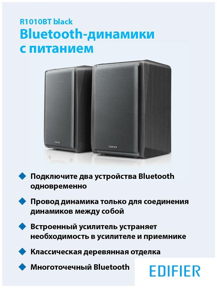 Колонка (пара). 2 динамика. Bluetooth 5.1. Частотная характеристика 65Гц-17кГц. В комплекте: колоночный кабель, аудио кабель 3.5мм-RCA, аудиокабель 3.5 (F)-RCA, инструкция пользователя.