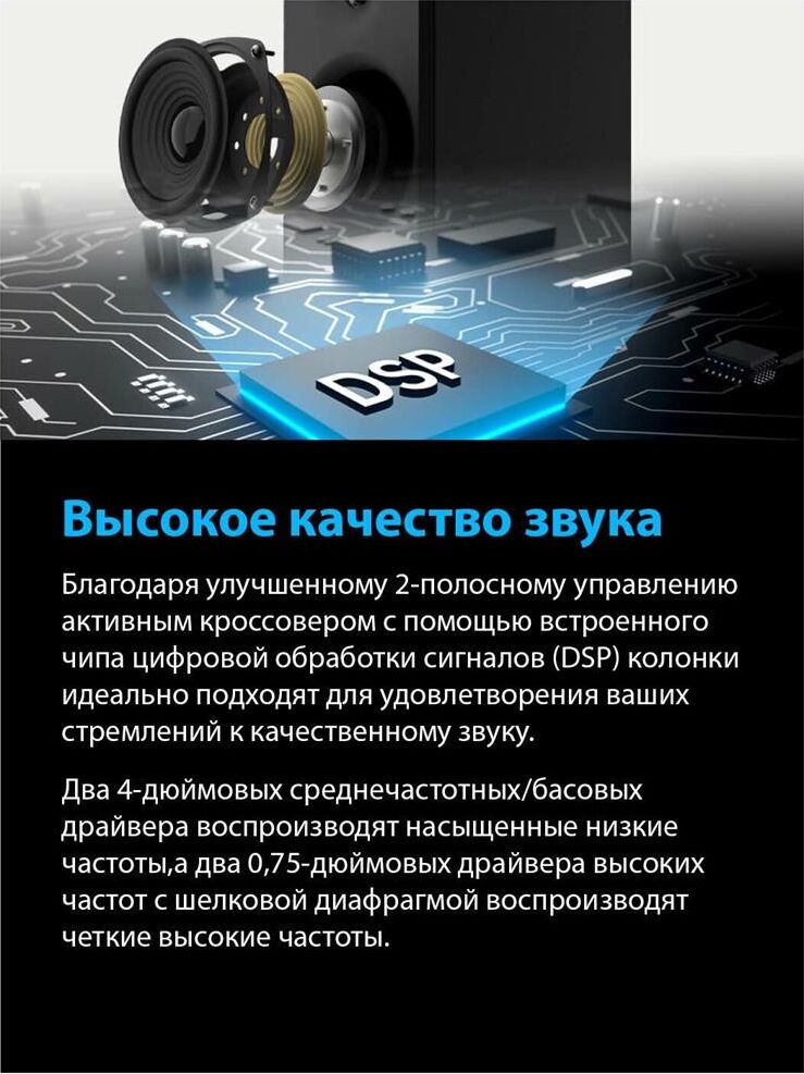 Колонка (пара). 2 динамика. Выходная мощность: 24 Вт. Частотная характеристика: 67 Гц-20кГц. Bluetooth 5.0. В комплекте: аудиокабель, инструкция пользователя.