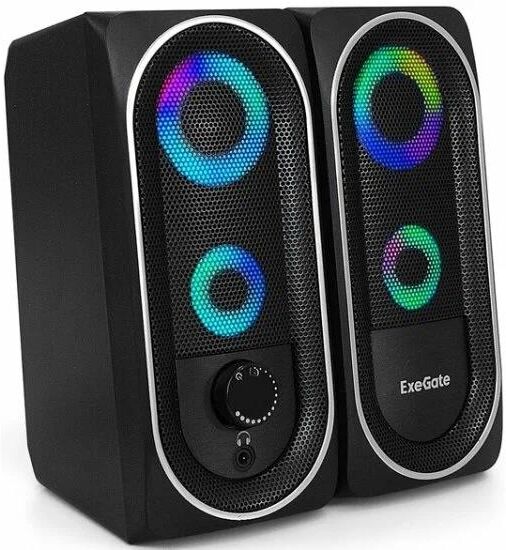 [Колонки EXEGATE] ExeGate Accord 220 EX289686RUS (питание USB, 2х3Вт (6Вт RMS), 60-20000Гц, цвет черный, RGB подсветка, Color Box)