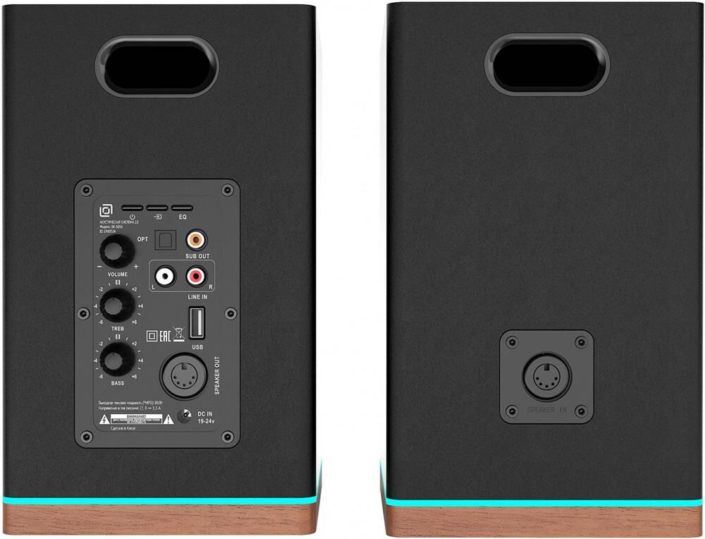 Суммарная звуковая мощность: 60. Встроенный цифровой декодер: есть. Основной цвет: черный. Акустический тип: 2.0. Материал корпуса колонок (фронт): MDF/пластик. Количество полос фронтальных колонок: двухполосные. Линейный вход (стерео): есть. Пульт ДУ: беспроводной. Отношение сигнал/шум: 85. Тип электропитания: от сети. Импеданс: 4. Выход фазоинвертора: на задней панели. Магнитное экранирование: есть. Расположение регуляторов: на задней панели. Разъем USB: 1. Цифровой вход, оптический: есть. Тип беспроводного подключения: Bluetooth. Подсветка: есть. Габариты упаковки (ед) ДхШхВ: 0.43x0.31x0.22. Вес упаковки (ед): 5.8. Длина кабеля: 1.5. Гарантия: 12 мес.. Частотный диапазон: 45 Гц - 20 КГц. Размер фронтальных колонок (ШхВхГ): 153 х 251 х 170 мм. Мощность фронтальных колонок: 2 х 30 Вт. Регуляторы: на задней панели. Суммарная звуковая мощность: 60 Вт. Питание: от сети. Тип: 2.0; Bluetooth. Цвет: черный