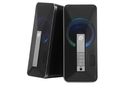Акустика 2.0 ,суммарная мощность 20 Вт, диапазон частот 100Гц - 16KГц, стерео-вход AUX INPUT, тип электропитания - USB, материал корпуса - пластик, габаритные размеры -90х120х200 мм.