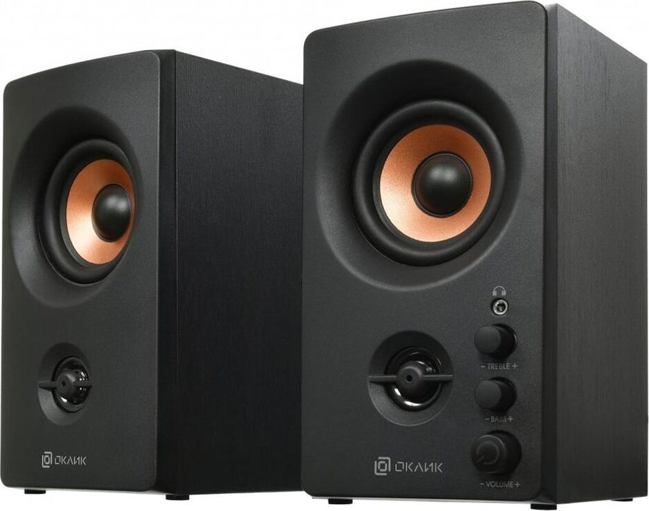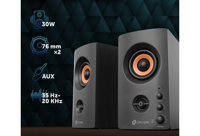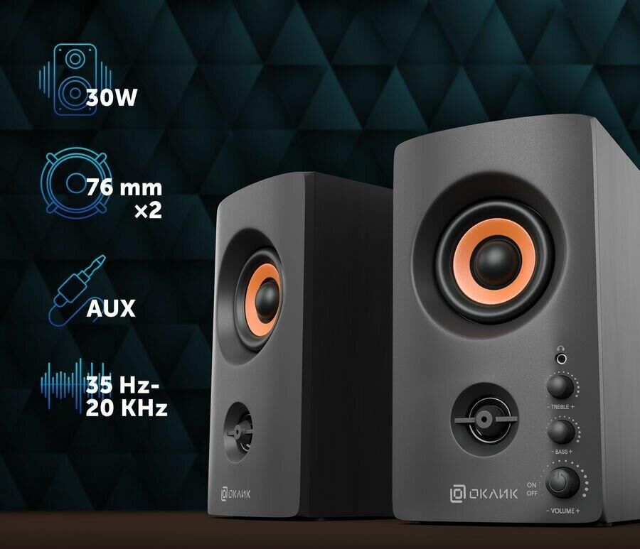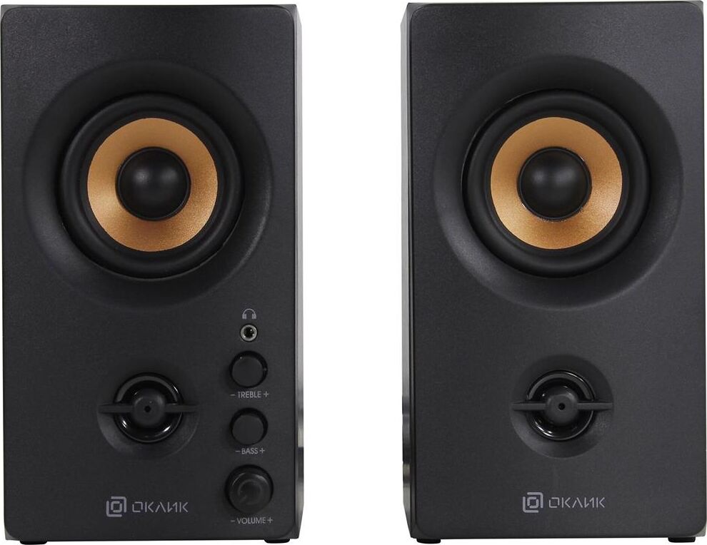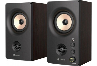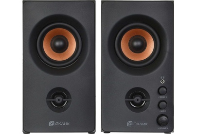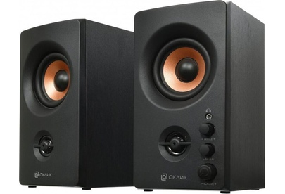 Достаточно мощные колонки для прослушивания музыки с компьютера, проигрывателя, ноутбука. Одно из основных преимуществ колонок заключается в расположении органов управления на лицевой панели. В колонках установлено по 2 динамика ВЧ и СЧ, что непосредственно влияет на качество воспроизведения. К акустической системе можно подключить гарнитуру. Лицевая панель колонок изготовлена из пластика, а корпус сделан из MDF. Суммарная звуковая мощность: 30 Вт. Частотный диапазон: 150Гц-20КГц. Отношение сигнал/шум: 65 дБ. Количество фронтальных колонок: 2. Тип электропитания: от сети. Материал: mdf/пластик. Размеры фронтальных колонок: 128*200*110 мм. Общий вес: 2,37 кг.