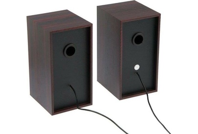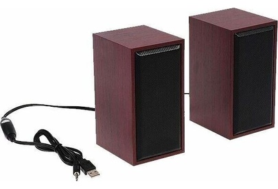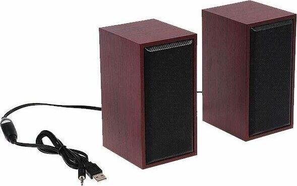 Компактные компьютерные колонки 2.0 «CABINET» с регулятором громкости. Возможно использование с любым источником звука, оснащенным стандартным аудио выходом 3,5 мм (компьютер, планшет, смартфон, MP3 плеер).Питание осуществляется от стандартного USB порта любого компьютера или Power Bank’а. Размер динамика 2x52 мм. Диапазон воспроизводимых частот 90–20000 Гц. Выходная мощность 2х3 Вт (RMS). Материал корпуса пластик/дерево. Размер 7,6х14,8х8,4 см. Вес, без упаковки 640 г.