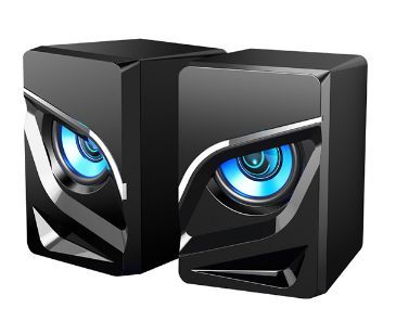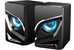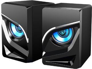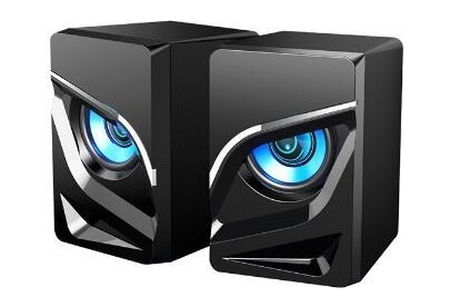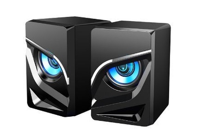 Компактная активная акустическая система, диаметр динамиков - 2*2 дюйма, чувствительность 650 мВ ± 50мВ, частота - 150 -20 000 Гц, интерфейс подключения к ПК - 3,5 JACK (стерео) + USB (питание и подсветка), дополнительные функции - вибрация и управляемая синяя подтсветка, материал корпуса - пластик, размер - 70*82*105 мм.