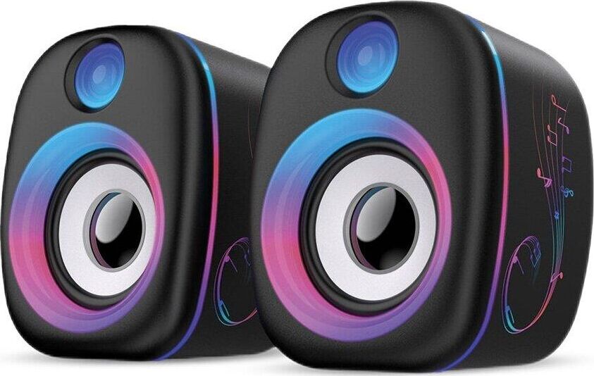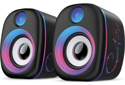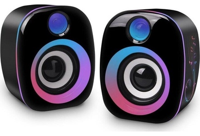 Плавный перелив цветов по всему корпусу колонок .Колесико регулировки громкости расположено на пульте на кабеле. Питание от USB. Характеристики Мощность 6 Вт Диаметр динамиков 50мм Диапазон воспроизводимых частот 200 Гц - 20 кГц