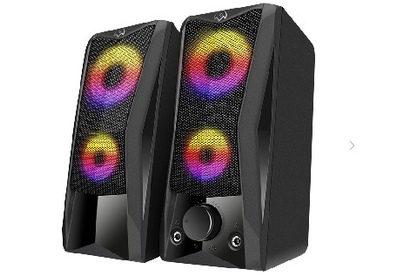 Акустика мультимедийная, ыыходная мощность (RMS), Вт6 (2 х3), частотный диапазон, Гц90 – 20 000, размеры динамиков, ммO 65, напряжение питания USB / DC 5V, динамическая подсветка, регулировка громкости, разъемы для подключения наушников и микрофона, размеры изделия, мм - 78 х175 х100