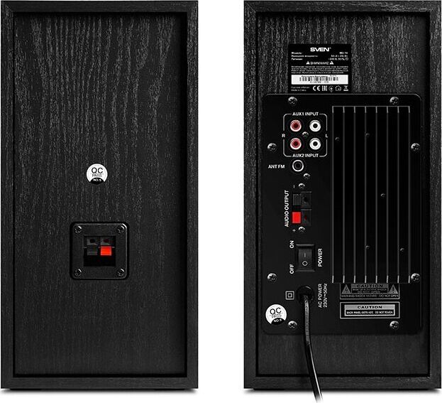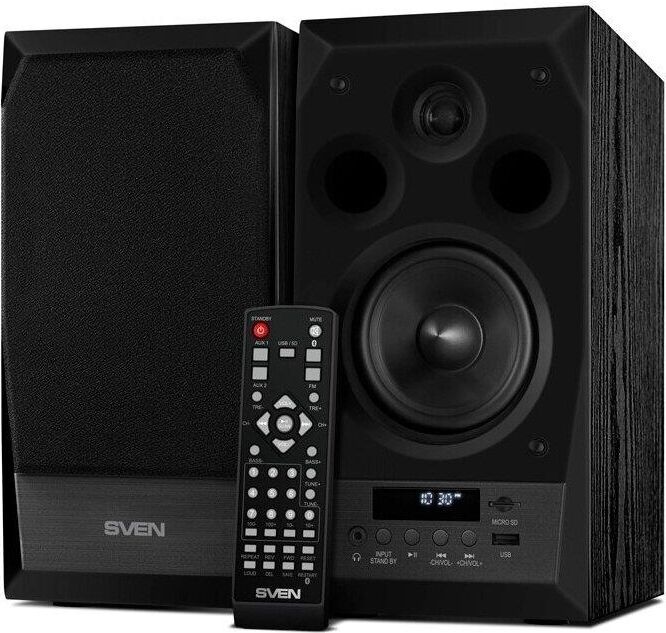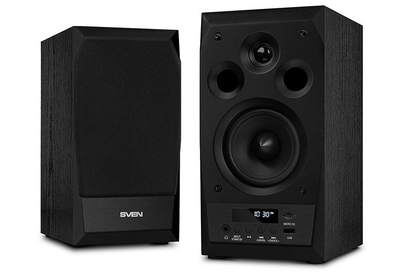 Акустическая система, выходная мощность (RMS), Вт 50 (2 х25), частотный диапазон, Гц 45 – 27 000, диаметр ВЧ-динамиков, мм O 25, диаметр НЧ-динамиков, мм O 100, напряжение питания ~220 В, 50 Гц, материал корпуса - дерево (MDF), беспроводная передача сигнала по Bluetooth, высококачественные купольные ВЧ-динамики, воспроизведение музыки с USB flash и SD card памяти, встроенное FM-радио, пульт ДУ, размеры изделия, мм - 145 х285 х218.