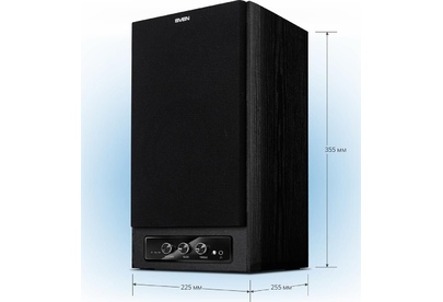 Акустическая система, Bluetooth, выходная мощность (RMS), Вт 200 (2 х100), частотный диапазон, Гц - 30 – 27 000, диаметр ВЧ-динамиков, мм O 32, типы входов - 2 RCA, материал корпуса дерево (MDF), размеры изделия, мм - 225х255х355.