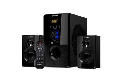 Акустическая система совместима с PC, DVD/Media-проигрывателями, мобильными устройствами, 55 Вт, 220 В, 50 Гц, частотный диапазон, Гц : сабвуфер: 45 – 150,сателлиты: 150 – 20 000, Bluetooth, разъемы для подключения USB ?ash, SD card, два коммутируемых вхо
