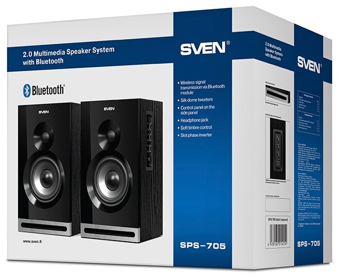 Акустическая система, выходная мощность (RMS), Вт 40 (2 х20), частотный диапазон, Гц 40 – 22 000, диаметр ВЧ-динамиков, мм O 25, диаметр НЧ-динамиков, мм O 100, напряжение питания ~220 В, 50 Гц, материал корпуса - дерево (MDF), беспроводная передача сигнала по Bluetooth, шелковые купольные ВЧ-динамики, размеры изделия, мм - 150х265 х175.