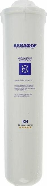 АКВАФОР КН сменный модуль для умягчения воды. Используется в системах АКВАФОР с отдельным краном. Умягчает воду, решая проблемы накипи и хлопьев в кипяченой воде. Модуль заменяется вместе с корпусом для бактериостатичности, но может быть регенерирован поваренной солью.